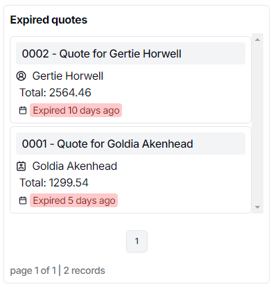 View quotes whose expiration date has already occurred. You can choose to delete the quote, convert it to an order or invoice.