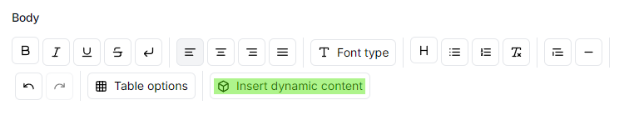 To insert a tag, click the Insert dynamic content button** and select an item from the list.