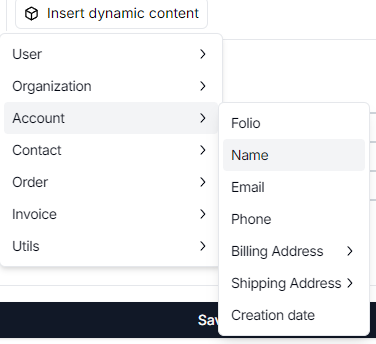You can insert dynamic content in templates to use the following items.