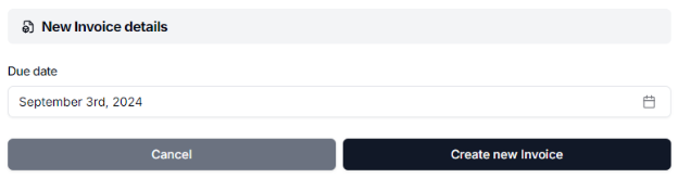 Select a due date for the invoice and click the Create new Invoice button. A dialog will appear to confirm the operation. Click Create new invoice button to complete the operation. From this moment on, the order and the invoice will be related. Therefore, the details from both elements can be used in the generation of new documents.