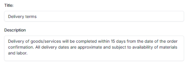 - Delivery terms.