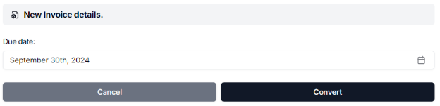 Click the Convert button to create the new invoice. A dialog will ask you to confirm the operation. Read the message carefully and click Convert this quote.