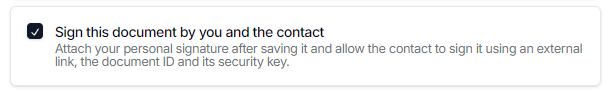 To do this, you must specify document to be signed by checking the checkbox in Sign this document by you and the contact at the document time creation.